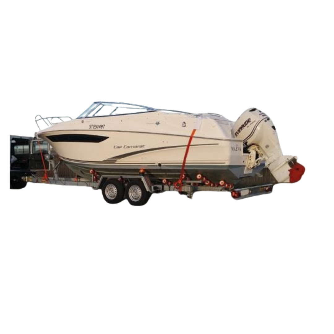 Plage de prix : €1,350.00 à €1,519.00Remorque double essieux pour bateaux à moteur PTC3200kg Mecanorem