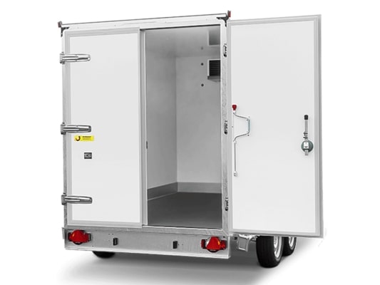 Le prix initial était : €2,503.00.€2,102.00Le prix actuel est : €2,102.00.REMORQUE FRIGORIFIQUE 2 ESSIEUX FREINES COOL TRAILER JUSQU’A 6°C HGK ROUES EXTERIEURES
