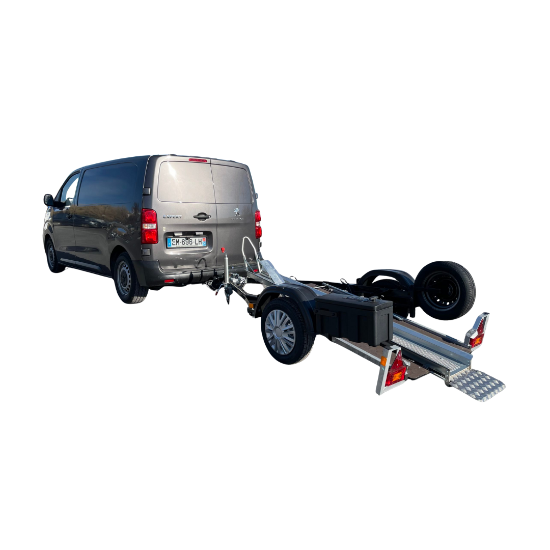 Le prix initial était : €1,809.00.€1,004.99Le prix actuel est : €1,004.99.Remorque porte moto 2.50m / 600 kg TYPE-TOP