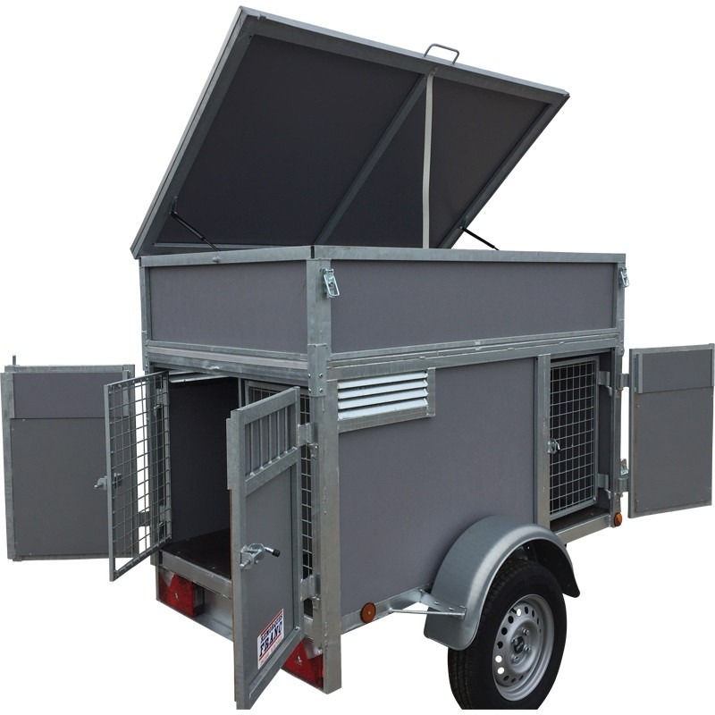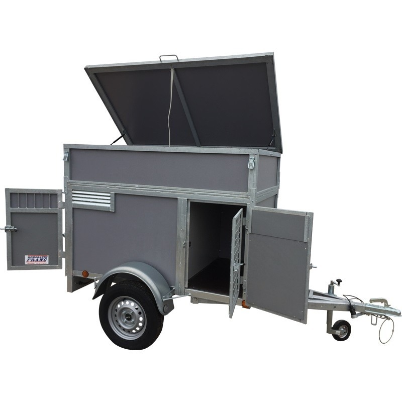FRANC TRAILER « 3 chiens + Coffre » est un véhicule adaptée pour la chasse, la pêche et tous les loisirs canins et activités animalières . Cette remorque permet de transporter 1 à 3 chiens partout avec vous.